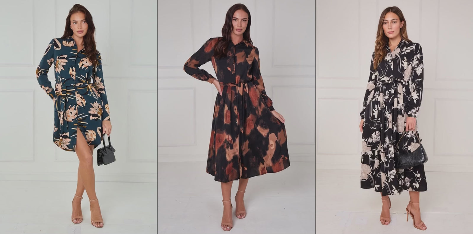 Embrace the essence of fall with dresses in rich tones, cozy textures, and effortlessly refined silhouettes.