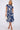 Blue Abstract Leaf Printed Frilled Hem Midi Dress
