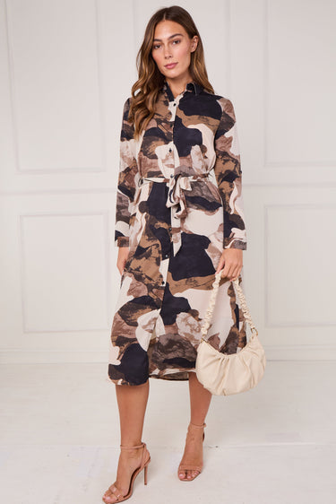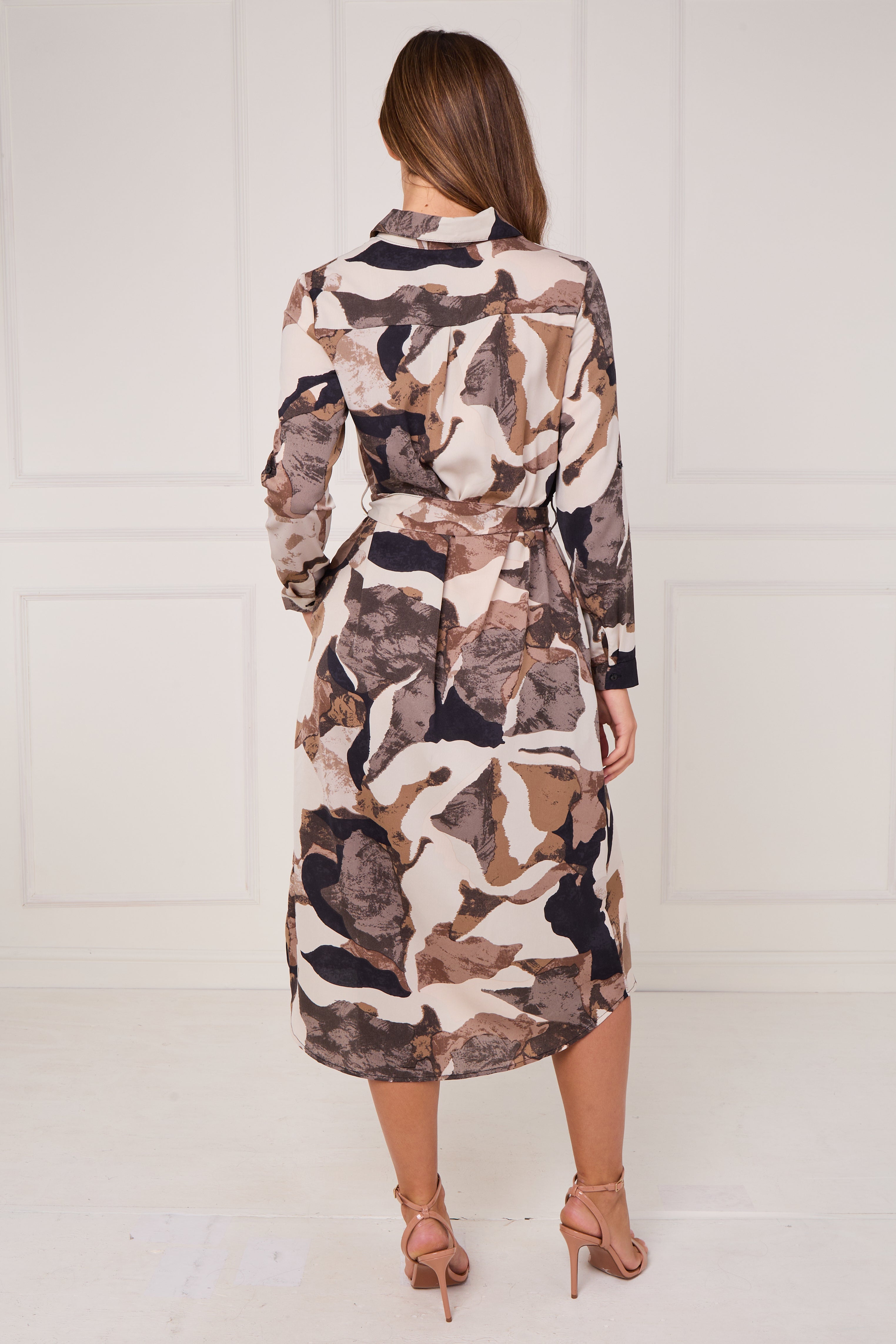 Earthtone Abstract Flow Print Midi Shirt Dress