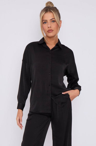 This stylish black brushed satin shirt combines elegance with a touch of modernity. Its luxurious satin fabric has a brushed finish that adds a subtle texture, enhancing its sophisticated appeal. Designed with a comfortable regular fit, this shirt features a classic collar, long sleeves, and a button-front closure. The deep black hue makes it a versatile addition to any wardrobe, perfect for both formal and casual occasions. Its sleek design and soft sheen are sure to make it a standout piece for those looking to elevate their style.