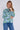 Blue and Green Tie Dye Print Tie Lace Satin Blouse