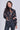 Black Brushstroke Smocked High Neck Blouse
