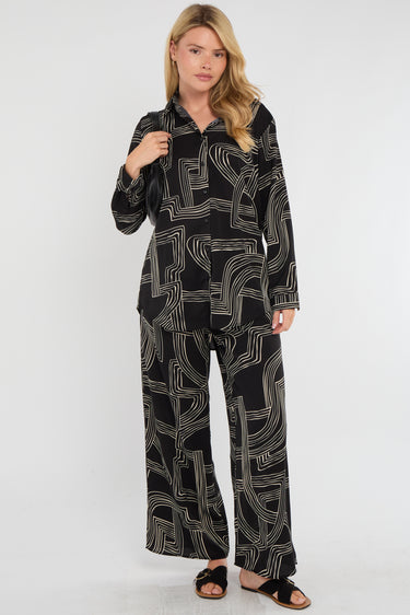 Black Geometric Maze Print Co-ord Shirt and Trousers Set
