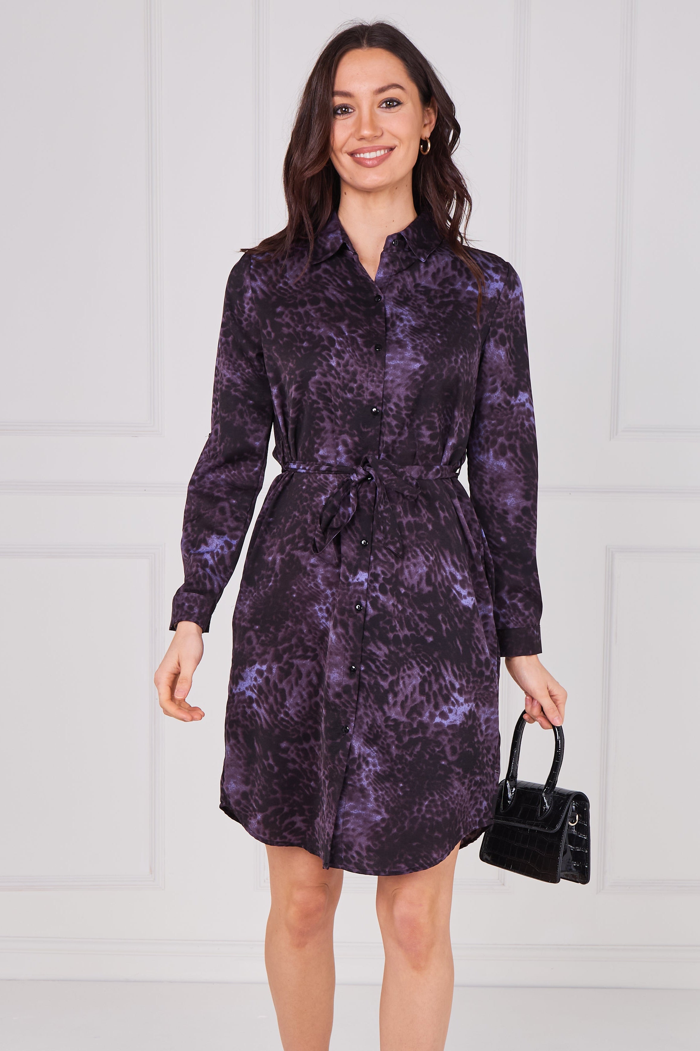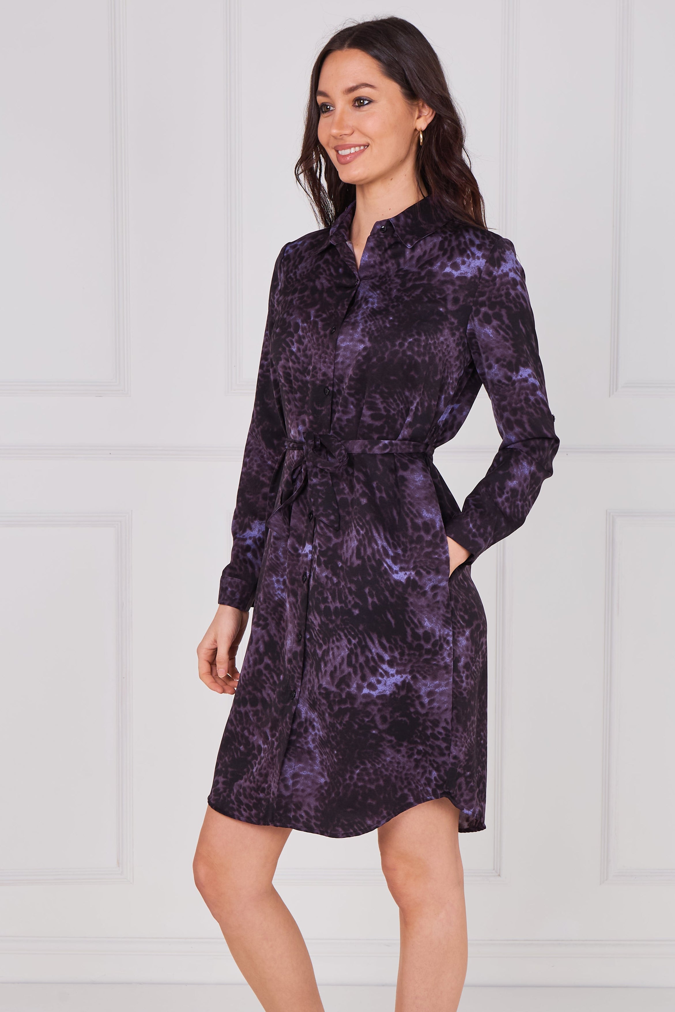 The Midnight Plum Animal Print Belted Shirt Dress is a bold yet sophisticated piece designed in rich plum and deep violet tones with an abstract animal-inspired print for a modern statement look. Featuring a classic shirt collar, full button-through front, long sleeves with cuff detail, a matching detachable waist belt to create a flattering silhouette, and practical two side pockets for added functionality, this chic shirt dress blends timeless tailoring with contemporary edge. The soft, lightweight fabric drapes effortlessly, making it perfect for workwear, evening plans, special occasions, and polished day-to-night styling. Pair with black or nude heels and minimal accessories for a confident, elevated outfit that stands out with refined glamour.